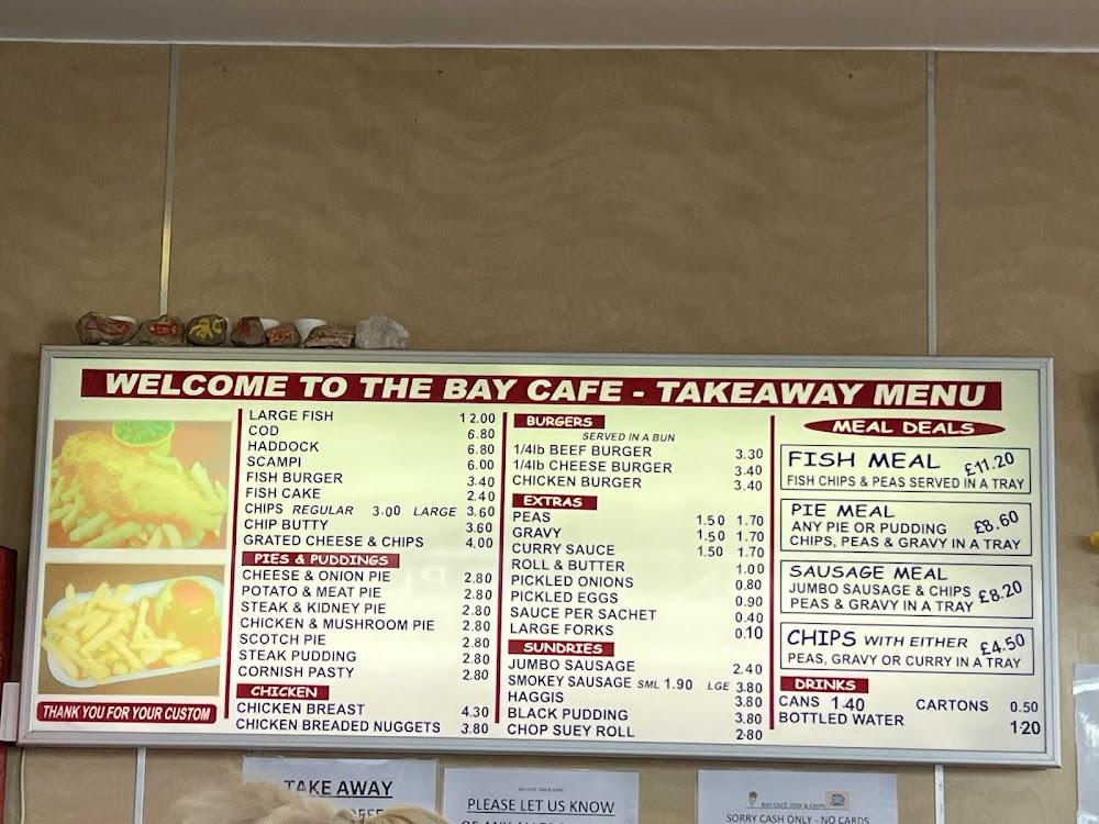 The Bay Cafe is nestled in the heart of Morecambe at 2 Nelson St, a stone's throw away from the beautiful seaside. The location boasts a relaxed, casual vibe that invites locals and tourists to enjoy a taste of the coast. With a rich history marked by loyal patrons and friendly service, this traditional fish and chips shop embodies the spirit of classic British seaside dining. Frequented by families and solo adventurers, visitors often appreciate the down-to-earth charm and the community feel of the place. Regulars share smiles, stories, and even fresh produce from the cafe's own garden, which is a lovely touch reflecting the warm community ties here. The vicinity makes it easy to pair a meal with a stroll along the Morecambe Bay promenade, enhancing the overall experience. Quite simply, The Bay Cafe listens to its customers and continually adapts to meet the needs of its diverse crowd while staying rooted in its fish and chips tradition.